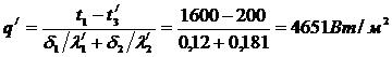 Определяем удельные тепловые потери нижнего участка стены для двух крайних случаев - при полной толщине новой огнеупорной кладки 460 мм и при изношенной до толщины 230 мм кладки.