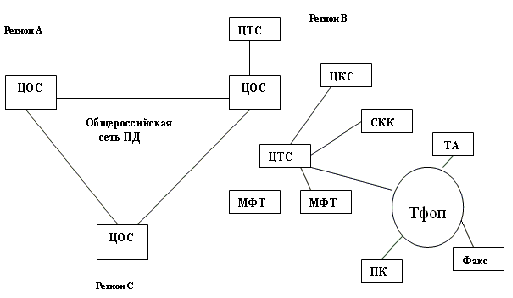 Рисунок 2. Региональный фрагмент Единой системы документальной электросвязи.