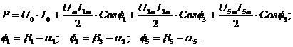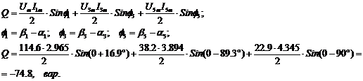 фаза гармоники напряжения; Реактивная мощность цепи: