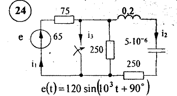 В цепи с одним накопителем энергии размыкание ключа происходит в момент t=0. Определим в переходном режиме законы изменения токов и напряжений, если в цепи действует источник: