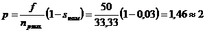 Примем число пар полюсов статорной обмотки равной 2.