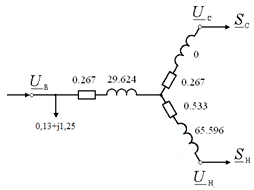 Проведённые для линий передач и подстанций расчёты позволяют составить упрощенную схему замещения электрической сети.