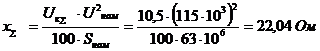 Определяем суммарное активное и реактивное сопротивления двух обмоток по