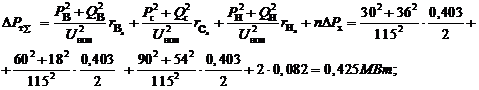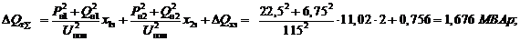 суммарные потери двух работающих трансформаторов по формулам (4.9) и (4.10):
