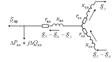Рассматриваемая подстанция в дальнейших расчётах может быть представлена мощностью, приведённой к шинам ВН, причём величина этой мощности определяется с использованием упрощенной схемы замещения трансформатора (рис. 4.2).