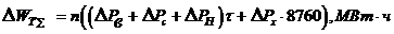 Потери активной мощности определяют суммированием потерь мощности в активных сопротивлениях схемы замещения, потери реактивной мощности - в индуктивных. Для определения потерь энергии за год используем следующие формулы: