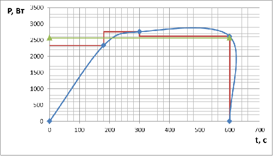 зависимости мощности от времени в течение одного периода изменения нагрузки.