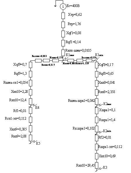Рисунок №9.2 Схема замещения для расчета токов к.з.
