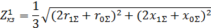 Определяем ток однофазного короткого замыкания. Находим сопротивления обратной (равно прямой т.к. нет вращающихся машин) и нулевой последовательности. Следует заметить, что в сопротивлении прямой последовательности нужно учитывать активное сопротивление дуги. Влияние активного сопротивления дуги на то КЗ учтем путем умножения расчетного тока КЗ, найденного без учета сопротивления дуги в месте КЗ на зависящей от сопротивления цепи КЗ поправочный коэффициент Кс.