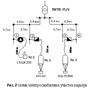 Составим схему электроснабжения участка карьера (рис.2).
