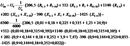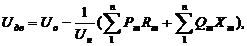 где Uо - напряжение холостого хода трансформатора, В; UН - номинальное напряжение приемника, кВ; Рm и Qm - соответственно суммарное активные и реактивные мощности, передаваемые по m-му участку, кВт и квар; Rm и Хm - соответственно активное и реактивное сопротивление m-го участка сети, Ом.