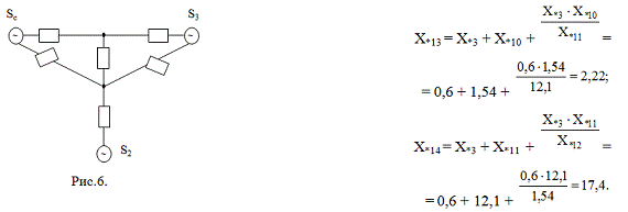 где Х*расч. - суммарное сопротивление цепи от синхронных двигателей до места короткого замыкания; SS - суммарная номинальная мощность синхронных двигателей, МВ×А; Sб - базисная мощность, МВ×А.