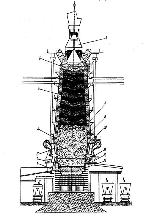 Рис. 1. Общий вид доменной печи (разрез).