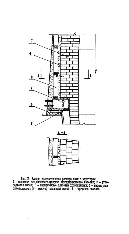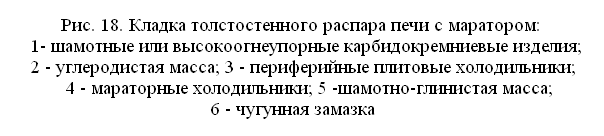 печи (рис.3) поверхность маратора до кладки толстостенного распара выравнивают