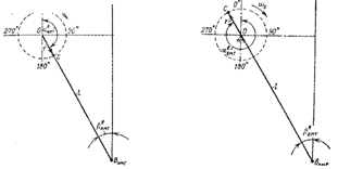 значений. Углы положение кривошипа при крайних положениях поршня компрессора