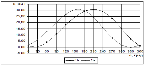 исходя из условия уравновешивания механизма) ход поршня вытеснителя равен ходу