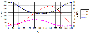 максимально изменяющихся объемов полостей сжатия и расширения: