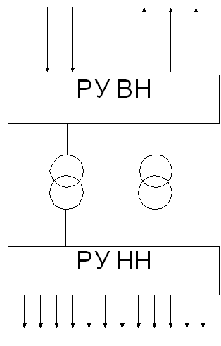 Структурная схема подстанции машиностроительного завода должна состоять из распределительных устройств (РУ) высокого и низкого напряжения, а так же понижающего трансформатора.