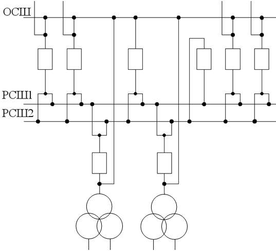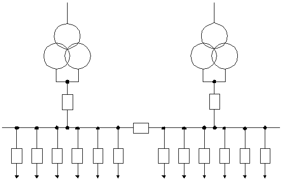 мощности между точками сети. Она имеет 2 питающие и одну отходящую линию 110