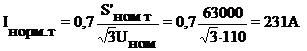 где: S’ном т - номинальная мощность трансформатора, с учётом установки в перспективе трансформатора следующей по шкале ГОСТ номинальной мощности, т.к. расчетная мощность 40, то выбираем трансформатор 63 МВА как перспективный.