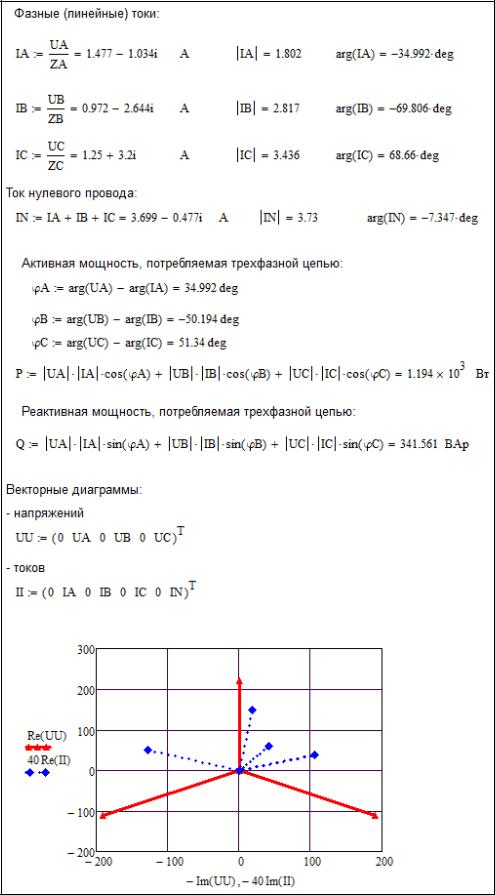Рисунок 3.8 – Расчет ТФЦ при соединении нагрузки звездой с нулевым проводом