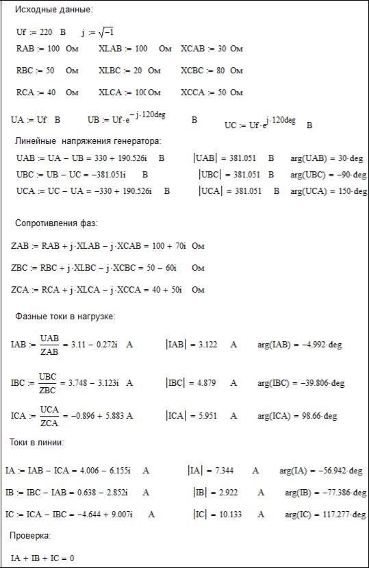 3.2.5.2 Расчет ТФЦ при соединении нагрузки треугольником