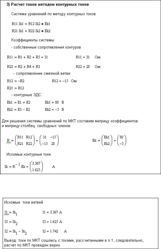 Рисунок 1.6 – Расчет токов методом контурных токов в системе Mathcad