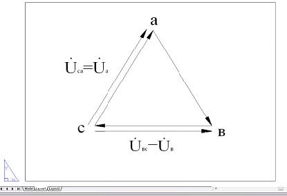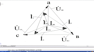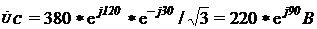 где соответственно - линейное напряжение между точками А и В, - линейное напряжение между точками В и С, - линейное напряжение между точками С и А.