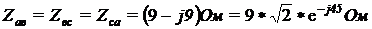 полное комплексное сопротивление, по закону Ома определю фазные токи в
