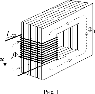 Протекающий ток создает вокруг катушки переменный магнитный поток, большая часть которого вследствие высокой магнитной проницаемости ферромагнетика замыкается по материалу Ф0. Существенно меньшая часть магнитного потока охватывает витки катушки, замыкаясь по воздуху, и образует так называемый поток рассеяния Фs. Основной поток и поток рассеяния отличаются друг от друга не только количественно, но и принципиально. Поток рассеяния замыкается по среде, магнитная проницаемость которой не зависит от напряженности магнитного поля. Поэтому его величина линейно связана с величиной тока катушки. Основной поток замыкается по ферромагнетику, обладающему сильно выраженной нелинейной зависимостью магнитной проницаемости от напряженности поля и неоднозначной связью между ними. Все это делает невозможным общий точный анализ процессов в катушке и требует принятия допущений, позволяющих рассматривать катушку как объект с линейными характеристиками.