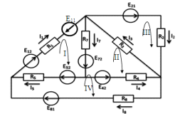II) I3*R3+I7*R7+I4*R4=E72+E42) I2*R2+I3*R3 =E21) I8*R8-I5*R5+I4*R4=E81-E52+E42