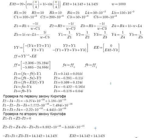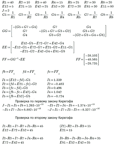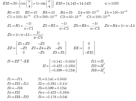 Рассмотрим часть программы, написанную для расчета токов в цепи по методу контурных токов