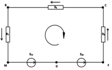 падений напряжений в замкнутом контуре равна алгебраической сумме ЭДС входящих