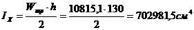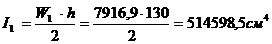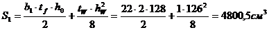Принимаем пояс 220х20 мм, Аf1=44,0 см2 Принятый пояс удовлетворяет рекомендациям bп1>18 см и bп1> h/10=13 см. Определяем момент инерции и момент сопротивления уменьшенного сечения: