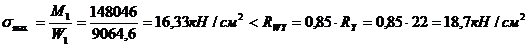 . Проверка устойчивости сжатого пояса производится в месте максимальных нормальных напряжений в нем - в середине пролета балки, где возможны пластические деформации. Проверку ведем по формуле
