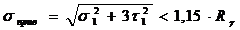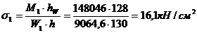 Под ближайшей балкой настила будет стоять ребро жесткости, которое воспринимает давление балок настила, и передачи давления на стенку в этом месте не будет. Проверяем приведенные напряжения в сечении 1-1 - месте