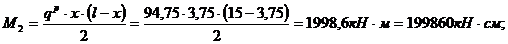 средние значения M и Q в сечении 2-2 на расстоянии х=375 см от опоры (под