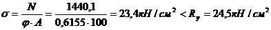 Бетон фундамента класса В25, Rпр=14,5 МПа=1,45 кН/см2.