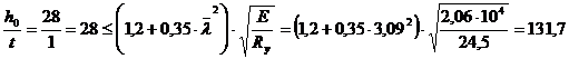 Первоначально определяем необходимость постановки ребер жесткости по формуле: