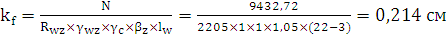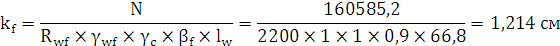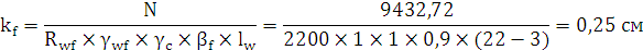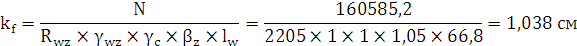 сварного соединения должна быть не менее 0,6 см, поэтому принимаем kf = 0,6 см. При этом