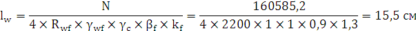требуется 19 см. Поэтому примем катет шва 0,6 см.