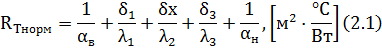 термические сопротивления слоев многослойной конструкции или части однослойной