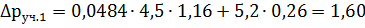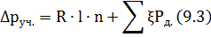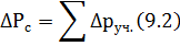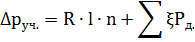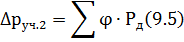 потеря давления на отдельных участках, Па;