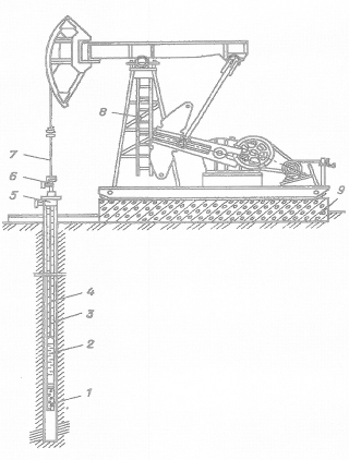 сальник; 7 - сальниковый шток; 8 - станок-качалка; 9 - фундамент