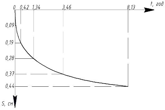 Ðèñóíîê 5. Ãðàôèê çàòóõàíèÿ îñàäêè âî âðåìåíè.