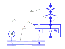 поликлиноременная передача; 3 - цилиндрический редуктор; 4- тяговая цепь; 5 -