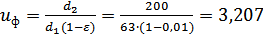 d2=d1u(1-ε) = 63∙3,28(1 - 0,01) = 204,6 (мм), (2.1)