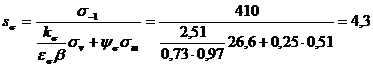 Определяем коэффициент запаса прочности по нормальным напряжениям
