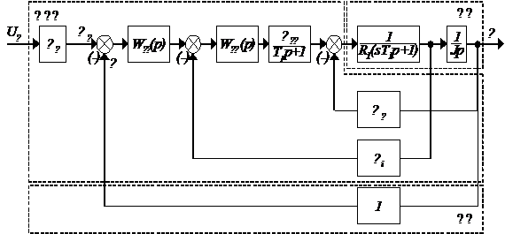 Рассчитаем теперь необходимые параметры и недостающие передаточные функции звеньев приведенной структурной схемы.