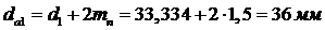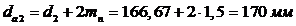 окружностей вершин зубьев шестерни и колеса: